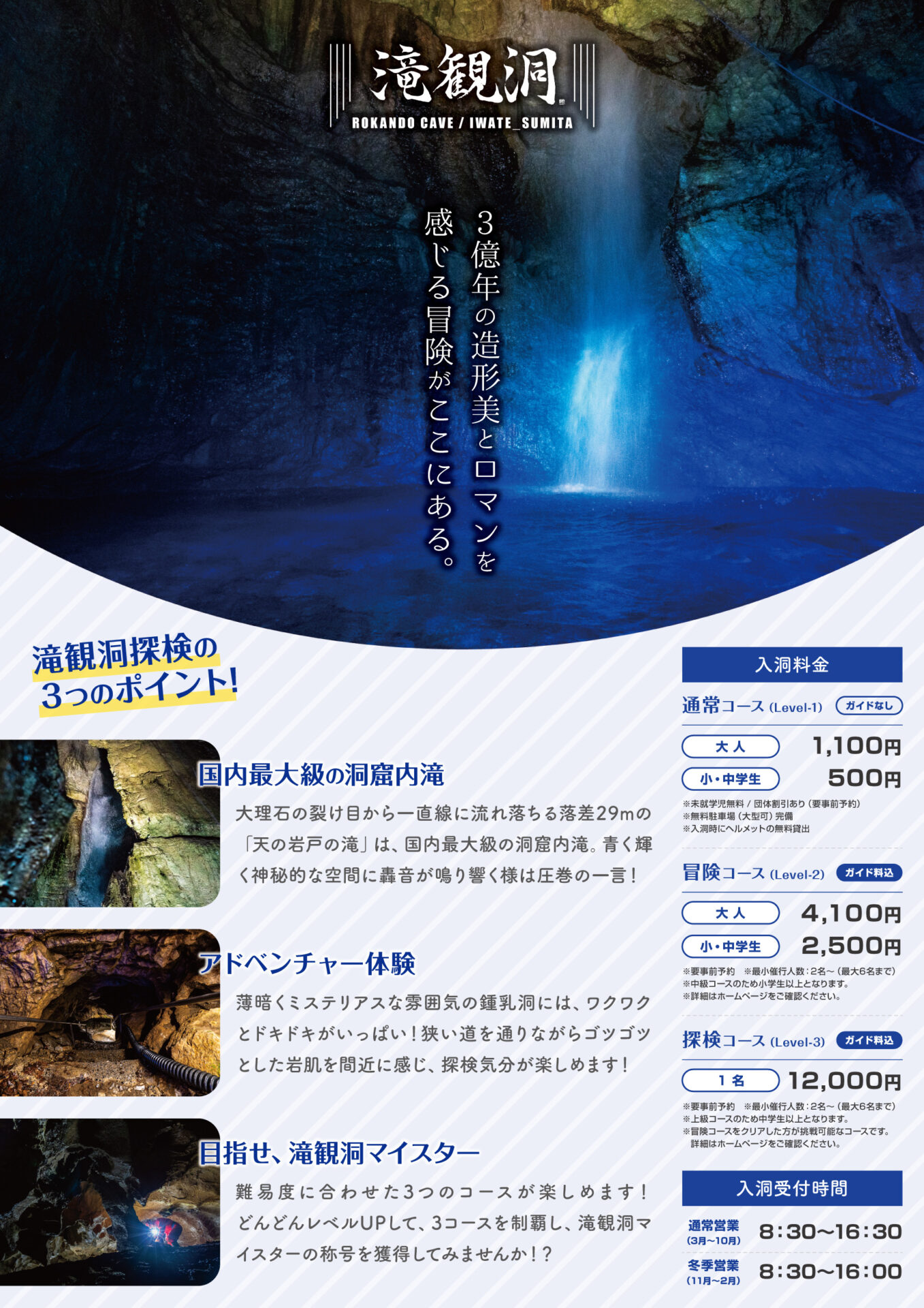 滝観洞は国内最大級の洞窟内滝を有する希少な観光資源である一方、認知度が低く、周辺観光地と比較して情報発信や魅力訴求が十分に行われていないという課題がありました。